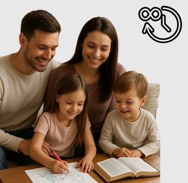 Ela não é um “plano engessado”, mas uma jornada viva, que guia sua família com leveza e constância — e mantém a fé sempre presente no lar.