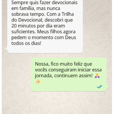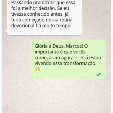 Devocionais prontos de 5 a 10 minutos para os dias mais corridos, garantindo constância mesmo na rotina mais caótica.